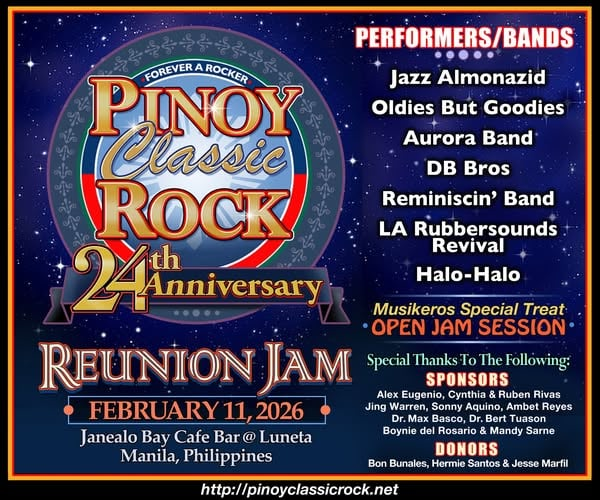 2026 marks the 24th Anniversary of PCR eGroup & website and we celebrated it last Feb. 11 at Janealo Cafe Bar at Luneta, Manila. We have changed the program format in which we have 6-7 bands performing and then a Jam Session. Here's a highlight video of what transpired last February.